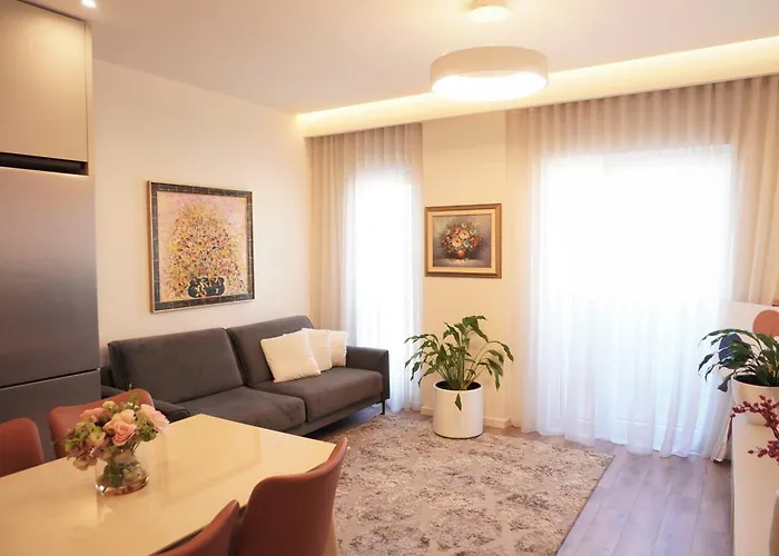 Gasten die in Delight Apartment verblijven, kunnen profiteren van voorzieningen, zoals een ingerichte keuken, evenals een eetgedeelte. Rruga Vjosa bushalte is in de onmiddellijke nabijheid van dit appartement van 75 m².